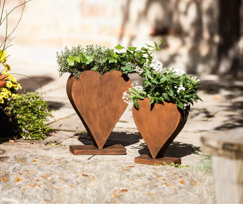 Le métal trouve sa place en touches plus nettes. Une petite suspension, un arrosoir ancien ou une silhouette d'animal peuvent suffire pour introduire une déco jardin métal sans transformer l'espace en exposition thématique. L'idée n'est pas de multiplier les effets mais d'apporter un contraste franc et bien placé.